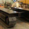 履帶板采用高單齒板,抓地力強(qiáng),增加與地面的摩擦,接地比壓小,提高了爬坡能力和行走的穩(wěn)定性,行走液壓馬達(dá)采用前置安裝,減小了導(dǎo)向輪在上坡時(shí)對(duì)張緊機(jī)構(gòu)的負(fù)荷,提高了使提高了使用壽命。